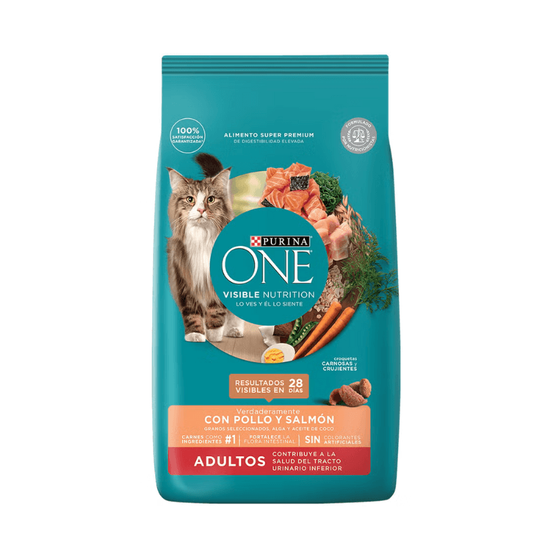 Alimento Seco de Pollo y Salmón para Gato Adulto Purina One 4lb cantidad