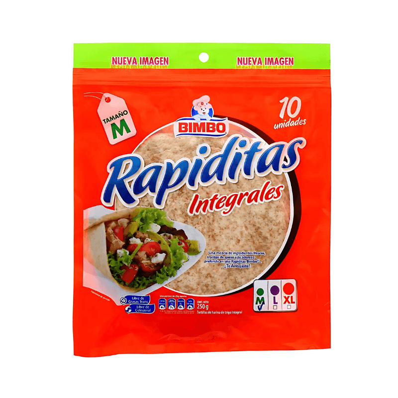 Tortillas de Harina Integrales Medianas Rapiditas Bimbo 10uds 250gr